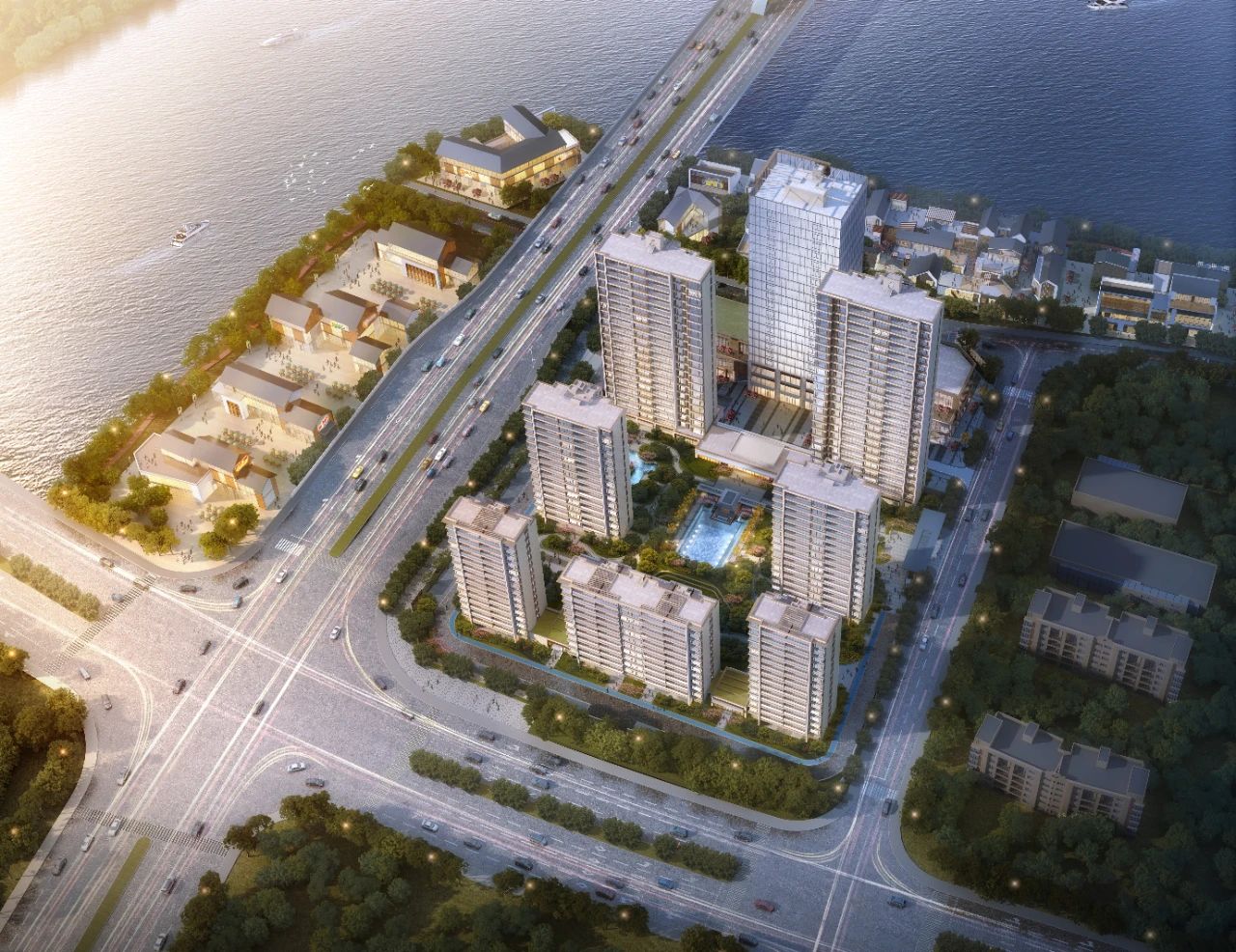项目位处宁波鄞州奉化江畔,三面临江,奉化江沿江物业多以商业为主,其作为宁波城市核心区少有的江景住宅项目,一度打破了区域江景住宅断档局面。